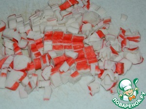 Украшение салата - цветок, я сделала из низа китайской капусты.