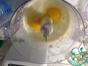 Смешать размягченное масло с сахаром, взбивать 5 минут. Добавить творог, затем яйца, подмешать разрыхлитель и просеянную муку.