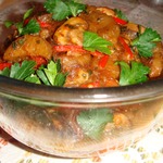 [+4]Внесла небольшие корректировки: не было горького перца - зато был сочный домашний болгарский, и добавила в готовое блюдо соль, чёрный перец и молотый кориандр, так как мне не хватило остроты.