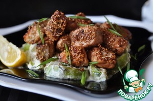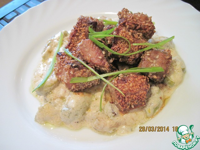 Рецепт «Лосось в кунжуте на подушке из цуккини»: