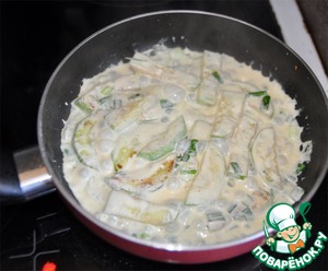 На блюдо выкладываем цуккини в сливках.
