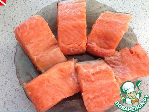 Филе семги делим на кусочки ( у меня получилось 8 кусочков по 100 грамм)