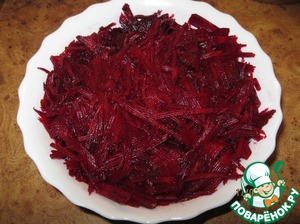 Натираем свеклу, заливаем ее водой (нам нужен краситель), но немного, чтобы не потерять интенсивность цвета.