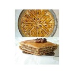 [+4]Спешу представить свой отчет: грецких орехов было маловато, поэтому в пироге арахис и им же пахлава украшена, во-вторых, мед я в начинку не добавляла, а, промазав растопленным маслом каждый пласт теста, посыпала сухой смесью молотых орехов и сахара, а растопленным. медом проливала в процессе выпекания. Пахлава вышла на славу, просто объеденье! Остывшую пахлаву можно хранить при комнатной температуре, всё равно испортиться она у вас не успеет