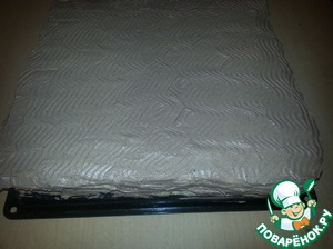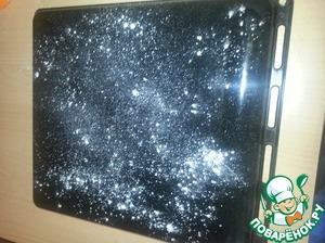 Противень поворачиваем нижней стороной вверх, обсыпаем мукой. Таким способом коржи легко вынимаются и не ломаются, так как они очень мягкие.