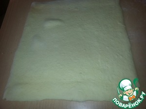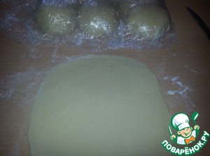 Тесто делим на 9 частей, тонко раскатываем коржи.
