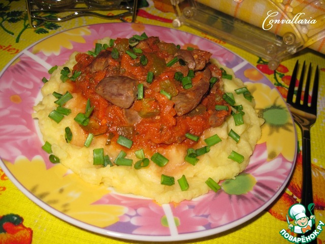Рецепт «Куриные сердечки с овощами в томатном соусе»: