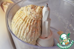 Я замешивала тесто в кухонном комбайне, по этому загрузила все продукты сразу
