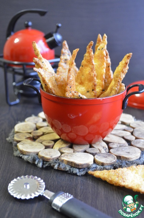 В казане разогреть масло, обжаривать чипсы с двух сторон до золотистого цвета.