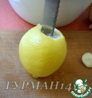 3. Теперь в месте выреза накалываем лимон ножом. Проколы ножом должны быть крестообразно, то есть перпендикулярны друг другу (в статье я не увидела, на какую глубину нужно вставлять нож, поэтому старалась не проткнуть низ лимонов).