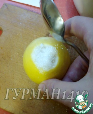 4. Чтобы ускорить брожение лимонов, надо всыпать немного сахара в отверстия «наколы» лимона и вдавить его вовнутрь пальцем.