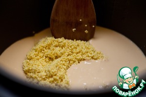 Так вот, заливаем пшено топленым молоком. -