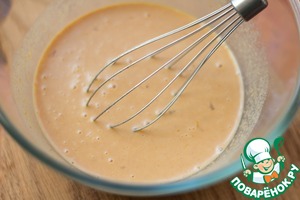 Оставшееся молоко (100 мл.) соединить с яйцом и карамельным соусом (про соус шагом ниже), взбить венчиком. Вместо молока можно использовать жирные сливки, тогда консистенция каши будет более кремовая. Также можно варьировать количество карамели по своему вкусу.