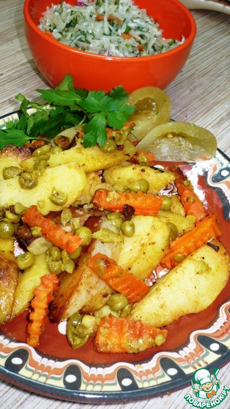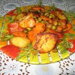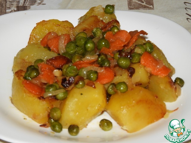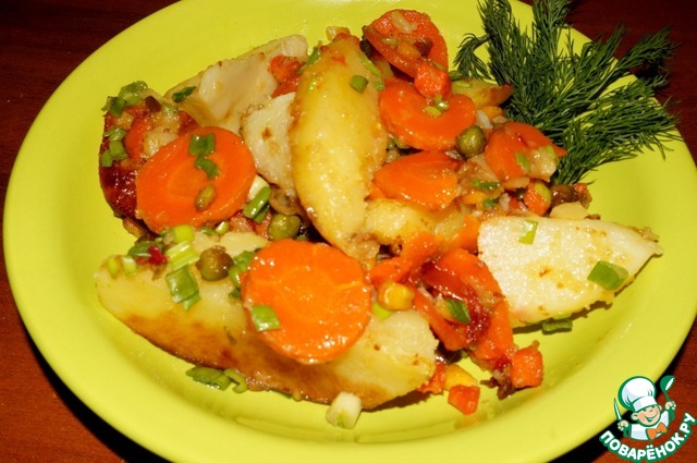 Блюдо получилось очень вкусное, но, к сожалению, картошка не слишком румяной вышла.