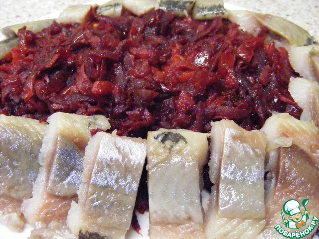 Рецепт «Сельдь со свеклой и овощами "Приятного аппетита"»: