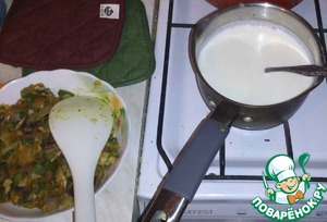• В это время разогреваем сливки почти до кипения и растворяем в них либо плавленные сырки, либо любой сыр который Вам нравится.