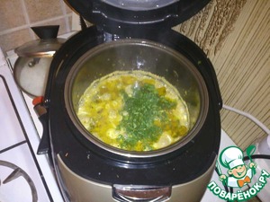 • За 10 минут до готовности перемешиваем и кладем ранее подготовленную зелень
