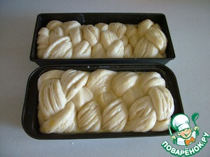 Укладываем заготовки в формы для выпечки. Расстойка в теплом месте при 27-33С 3-5 часов под колпаком, пока заготовки не увеличатся в 3-3,5 раза.