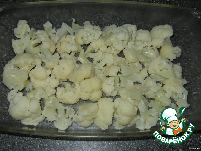 Цветную капусту отварить в подсоленной воде до полуготовности.