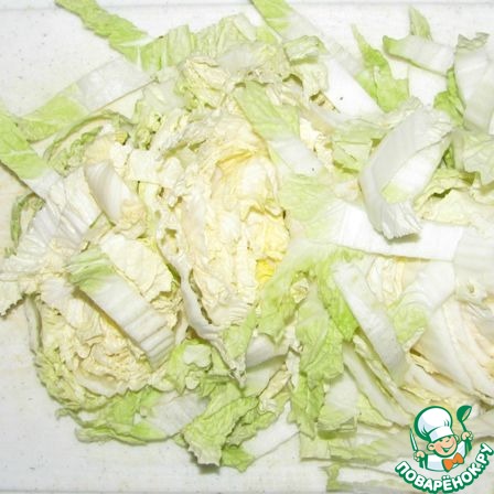 - Капуста пекинская (маленький, если крупный, то 1/4) — 1/2 вилок
