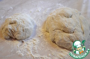 Тесто разделить на две части, так чтобы одна была больше, другая поменьше.