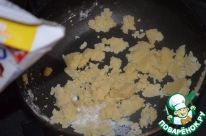 На сковороде растопить сливочное масло, в нем поджарить муку минуты две-три.