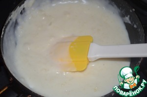 Понемногу добавить в муку молоко, не переставайте мешать. Прогреть еще пару минут. Снимите с огня и остудите.