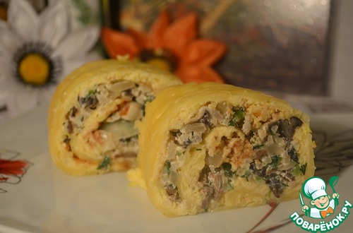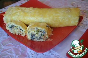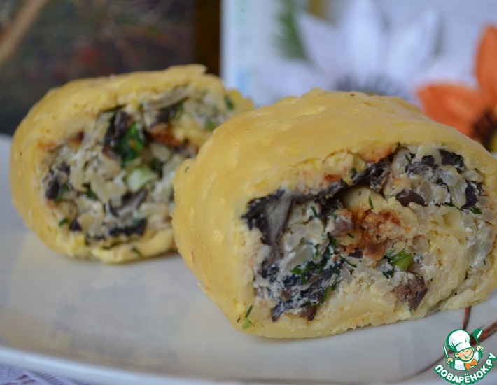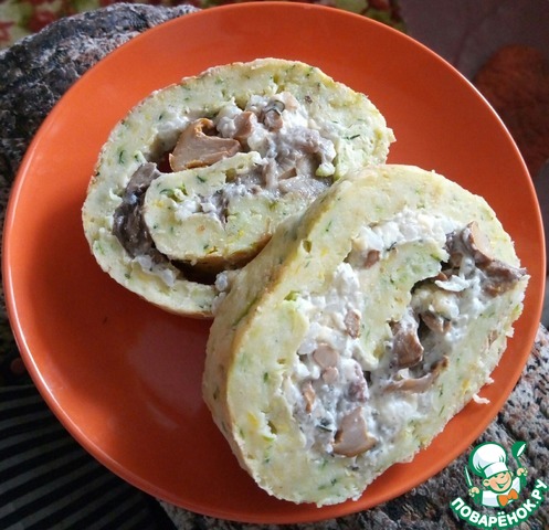 Рецепт «Кабачковый рулет с грибами и рисом»:
