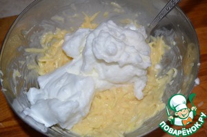 Белки взбить с щепоткой соли и добавить к кабачковому тесту. -