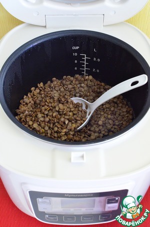 Чечевицу отварить до готовности. Я делаю это в мультиварке в режиме Крупа 30 минут.