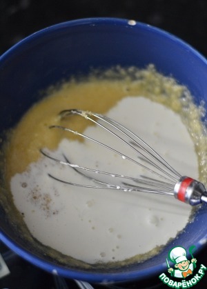 Начинка. Яйцо и сахар (50 г) взбить слегка венчиком.
