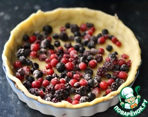 Вынуть тесто. Разложить замороженные ягоды, предварительно НЕ размораживая.