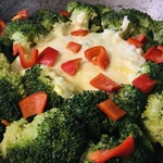 Достаем брокколи и посыпаем сверху. Как по мне, то это не только красиво, но и придаёт освежающую нотку для вкуса. Однажды готовила без перчика, получилось совсем не то. И глаз не так радовался, и вкус не был совершенен.