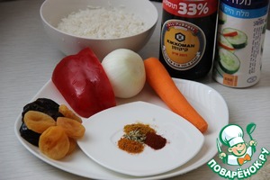 Ингредиенты для «Солёный рис с овощами и сухофруктами»: