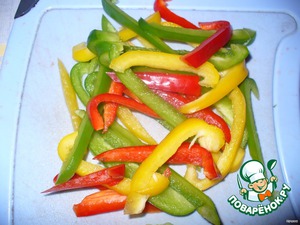 - Перец болгарский (сладкий перец - красный, зеленый и желтый - по 1/2 стручка)