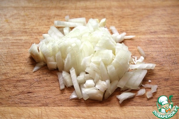 Наливаем в стакан кипяченой воды+1 столовая ложка 70% уксуса. Режем репчатый лук, можно соломкой, я всегда нарезаю мелкими кубиками. Все это заливаем и оставляем мариноваться на 2 часа.