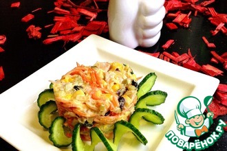 Этот салат любят все мои гости, первым делом съедают его!!! Просто нет слов от восхищения!! Это лучший салат, он займет достойное место на вашем праздничном столе, благодаря оригинальному вкусу!!!