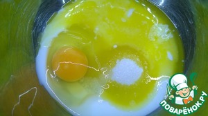 Взбейте вместе кефир, сахар, масло и яйцо.
