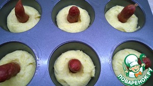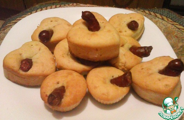 Рецепт «Маффины с охотничьими колбасками за 10 минут»: