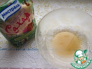 Приготовить для начала кляр. Налить в емкость воды и добавить коричневый сахар, размешать.