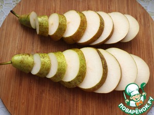 Груши хорошо помыть, нарезать кружочками, удалить сердцевину по необходимости (я не удаляла).