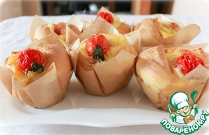 • Кладём в разрезы кусочки сыра и по целой помидорке черри.