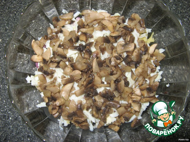 - Грибы (шампиньоны,свежие - 100г;консервированные - 150г) — 250 г