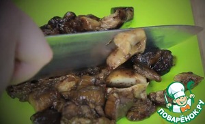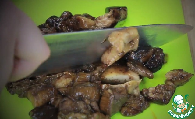 Немного прорезаем грибы, чтобы сделать их поменьше - ну чтобы в рот вкусно ложились