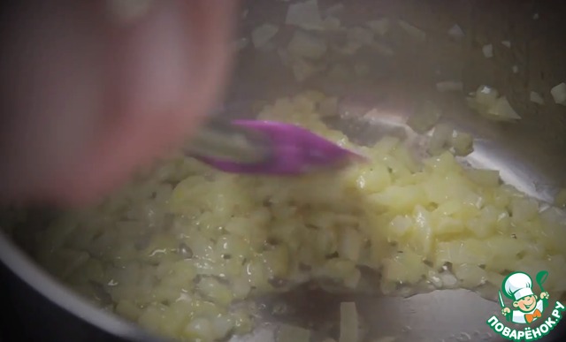 Обжариваем минут 7 лук с чесноком в сливочном масле. В этот момент наслаждаемся запахами, потому что они просто шикарны!