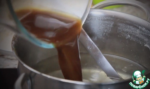 Смешиваем жидкость от грибов с нагревшимся бульоном - вы же помните как мы поставили их нагреваться?