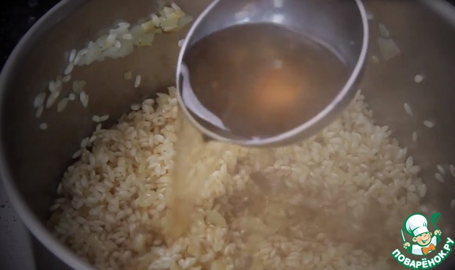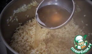 Добавляем половник больона и будем готовить помешивая пока бульон не впитается