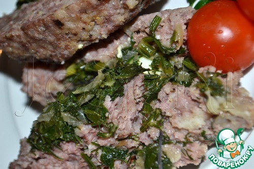 Выкладываем вторую половину фарша, хорошо утрамбуем.