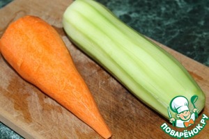 Самые главные ингредиенты - кабачок и морковь - моем и чистим.