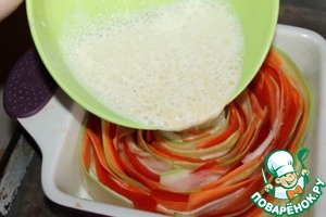 Заливаем овощи яично-йогуртовой смесью, она должна полностью скрыть овощи.